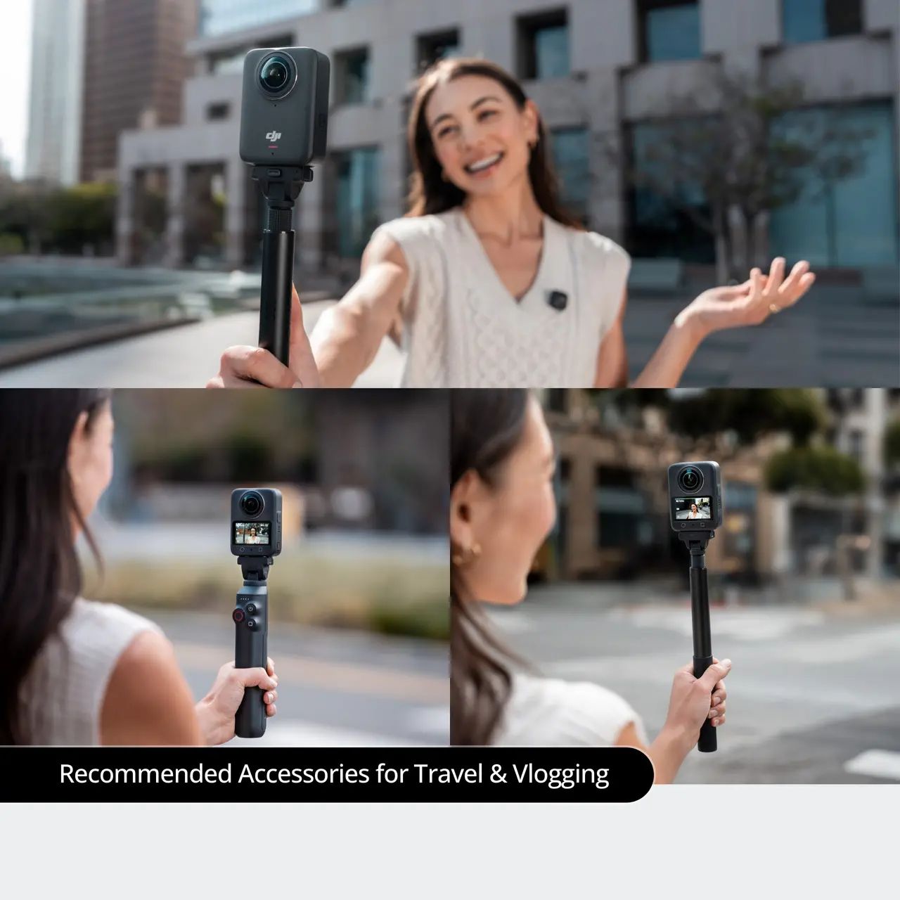 Compatible with Osmo Action series accessories and is equipped with a 1/4" thread hole. Easily switch between shooting modes with the selfie stick and adjustable quick-release adapter [7].